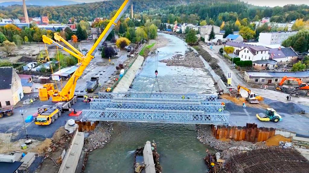 Działamy! Kolejny istotny etap po zamontowaniu przez wojska inżynieryjne obu konstrukcji nad Białą Głuchołaską to prace związane z wykonaniem dojazdów do obiektów oraz obciążenia próbne obydwu obiektów.